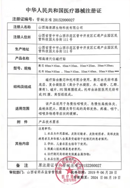 | 江西省+耗材掛網(wǎng)采購項(xiàng)目 | 咽扁清穴位磁療貼 | 晉械注準(zhǔn)20152090027 | 4貼|盒 | 72.6000 |