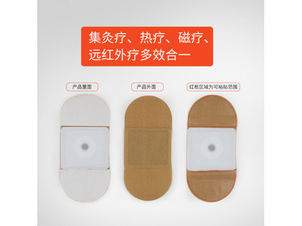 該產(chǎn)品由醫(yī)用無紡布、遠紅外布、醫(yī)用膠、離型紙、磁片、發(fā)熱袋(含有還原鐵粉、活性炭、蛭石粉、醫(yī)用樹脂、鹽、水)組成。