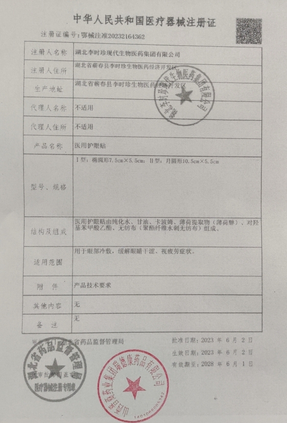 湘械注準20232140265/湖南敷爾斯生物醫(yī)藥有限公司 有效期至:2028-03-15醫(yī)用護眼貼