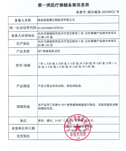 湘長械備20230835號/湖南同健生物科技有限公司HPV病毒染色試劑