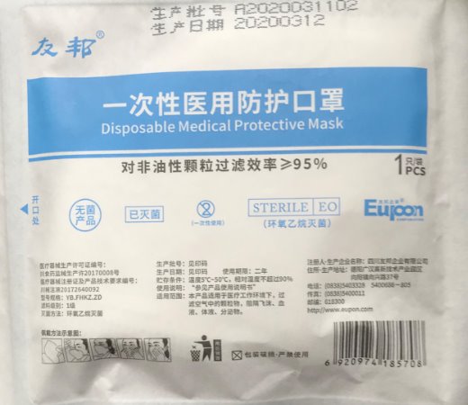 川食藥監(jiān)械(準(zhǔn))字2009第2640017號(hào)/四川友邦企業(yè)有限公司 有效期至:2013-01-19一次性醫(yī)用防護(hù)口罩