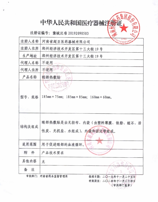 豫械注準20252090246/夏邑縣久之康醫(yī)療器械有限公司 有效期至:2030-04-01眼部熱敷貼