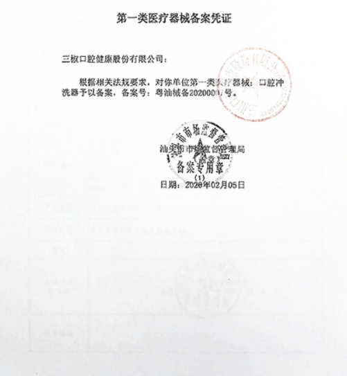 吉白械備20210003號/吉林歐瑞特醫(yī)材科技有限責(zé)任公司口腔沖洗器