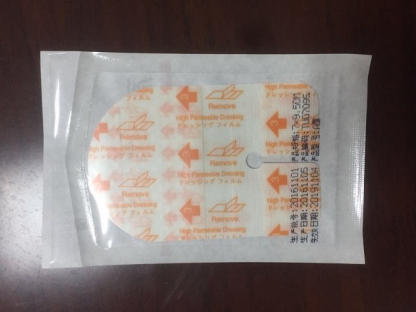 A型一次性使用無菌敷貼由涂有醫(yī)用壓敏膠的聚氨酯/聚乙烯復合膜制成;B型一次性使用無菌敷貼由涂有醫(yī)用壓敏膠的聚氨酯/聚乙烯復合膜制成,并帶有木質棉的敷芯,不含藥;C型一次性使用無菌敷貼由涂有醫(yī)用壓敏膠的無紡布制成,可帶有木質棉的敷芯或單獨由敷芯組成,不含藥。