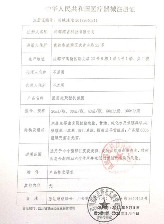 | 四川省耗材掛網(wǎng)(2022年第六批) | 醫(yī)用殼聚糖抗菌膜 | 川械注準(zhǔn)20172640211 | 20ml瓶 | 56.00 |