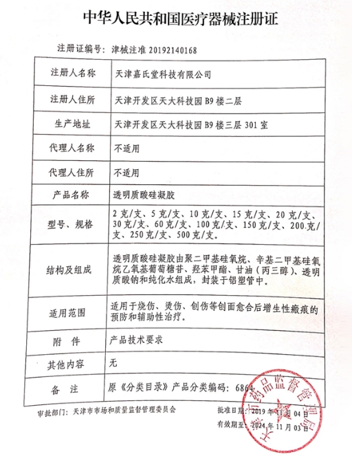 | 山東省醫(yī)用耗材限價掛網(wǎng)數(shù)據(jù) | 醫(yī)用疤痕透明質(zhì)酸硅凝膠 | 津械注準20192140168 | 15克/支 | 358.0000 |