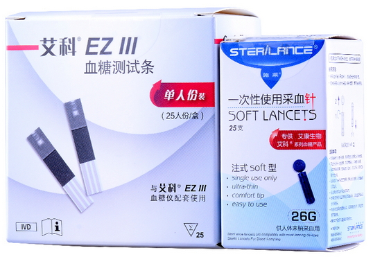 型號(hào):艾科.精益(On Call Plus)、艾科.靈睿(On Call EZII)、艾科.EZIII(On Call EZIII);包裝:1人份袋、10人份筒、25人份筒、50人份筒、25人份盒、30人份盒、50人份盒、100人份盒;控制液(可選配)包裝:2瓶盒;5瓶盒;10瓶盒。