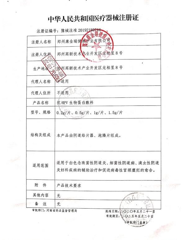 豫械注準20232180529/河南和濟堂生物科技有限公司 有效期至:2028-06-25抗HPV生物蛋白敷料