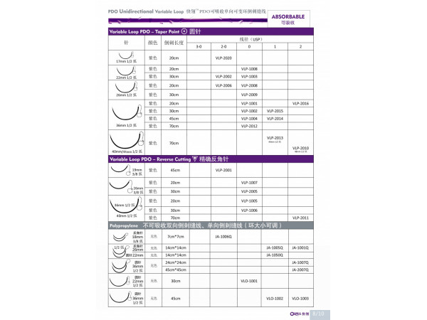 本產(chǎn)品是由聚酯、聚對二氧環(huán)己酮制成,成品經(jīng)環(huán)氧乙烷滅菌。