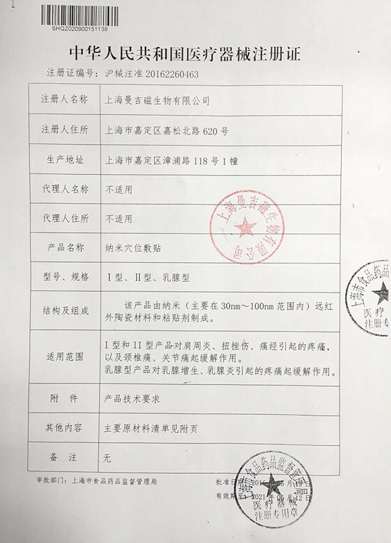 該產(chǎn)品由納米(主要在30nm~100nm范圍內(nèi))遠紅外陶瓷材料和粘貼劑制成。