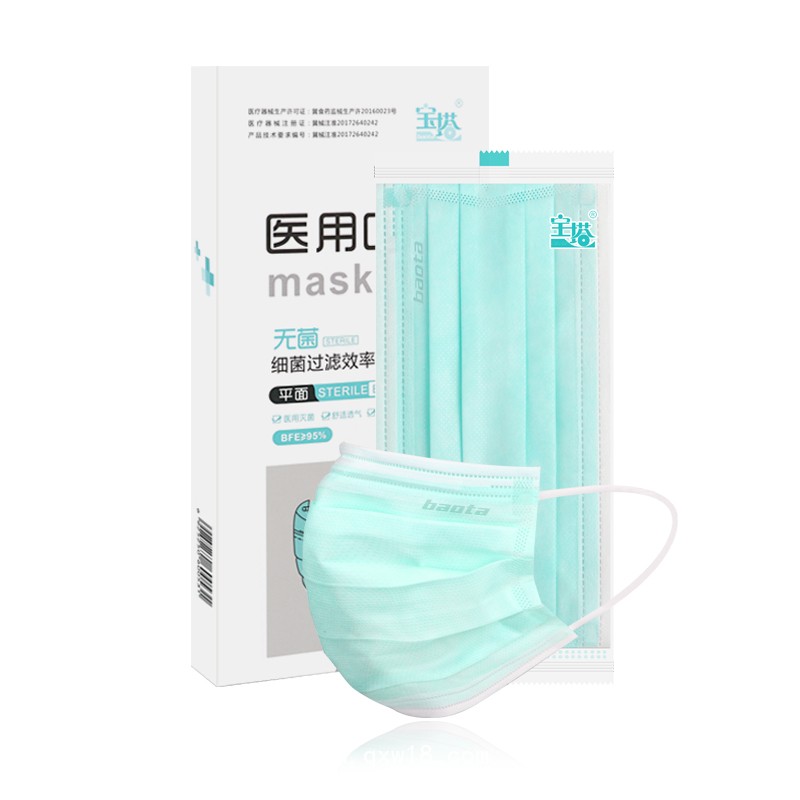 產(chǎn)品名:寶塔醫(yī)用口罩平面A型10片/盒三層無紡布獨立包裝無菌防塵防霾