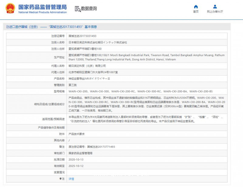 產(chǎn)品名:朝日 神經(jīng)血管導(dǎo)絲 WAIN-CKI-200/300