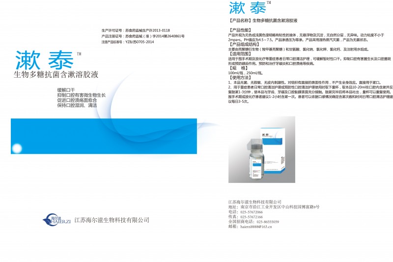 產(chǎn)品名:漱泰--生物多糖抗菌含漱溶膠液