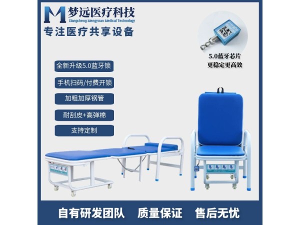功能特點Ⅰ 采用藍牙鏈條鎖,配套夢遠第六代共享設備軟件管理系統(tǒng).Ⅱ 一物兩用,平時可做陪護椅免費使用;掃碼拉出是陪護床,節(jié)