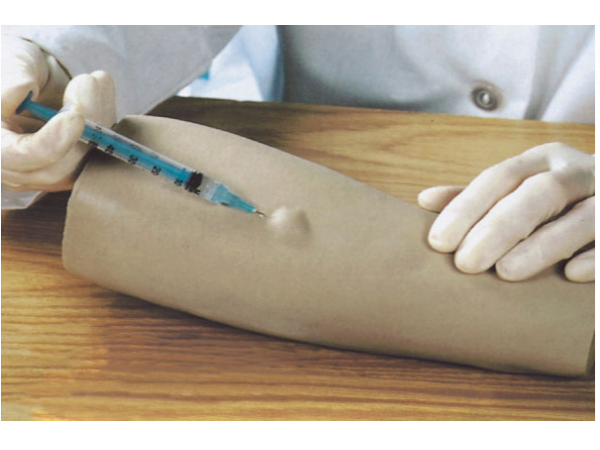 主要功能:手臂共提供8個(gè)部位進(jìn)行皮試練習(xí),期中四個(gè)部位有不同等級(jí)紅丘色標(biāo)志。如果液體注射正確,皮膚上九會(huì)出現(xiàn)一個(gè)皮丘,抽