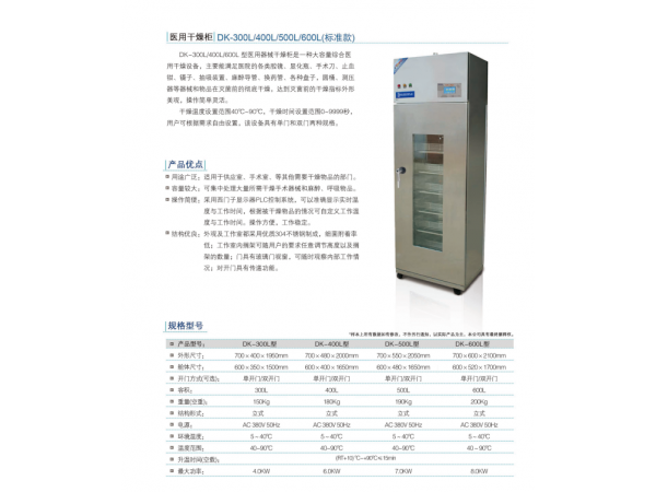 產(chǎn)品名稱:醫(yī)用干燥柜產(chǎn)品型號:DK-300L/400L/500L/600L(標準款)產(chǎn)品簡介:醫(yī)用干燥柜是一種大容量綜合醫(yī)用干燥設備,主要能滿