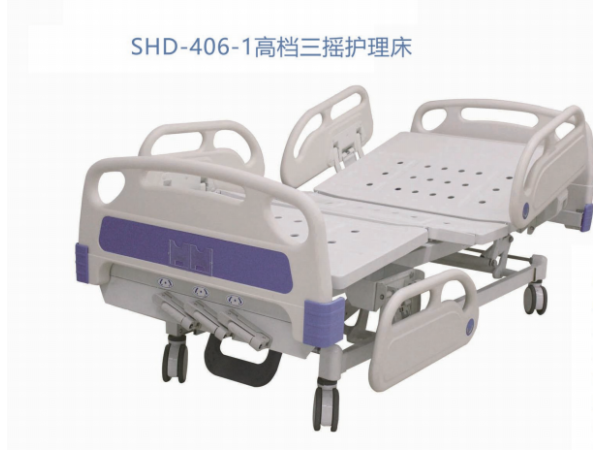 1、床頭、床尾采用ABS高級(jí)工程塑料制成,外形美觀,裝卸自如,抗沖擊性、耐熱性、耐低溫性、耐化學(xué)藥品性及電氣性能優(yōu)良。2、床架采用型鋼焊接而成,牢固可靠,表面經(jīng)靜電噴涂,美觀大方,抗老化,不生銹,堅(jiān)固耐用。3、床面采用冷軋鋼板一次沖壓成型,堅(jiān)固耐用。深凹式的孔洞矩陣式設(shè)計(jì),透氣性強(qiáng)。4、折疊式鋁合金護(hù)欄,方便實(shí)用,護(hù)欄防夾手設(shè)計(jì)。5、四輪采用全制動(dòng)腳輪,穩(wěn)定性強(qiáng),無(wú)噪音。6、本產(chǎn)品具備靠背、屈腿、升降功能,配置ABS隱藏式搖把,可以隱藏于床體,避免不必要的傷害,方便護(hù)理人員操作。