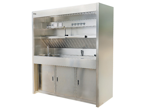臺面內(nèi)圓弧形連接,不結(jié)垢,便于清洗;解剖臺面可以整體取下,便于清洗;水池內(nèi)設(shè)有尸體毛發(fā)隔離器,防止毛發(fā)進(jìn)入排水管道;有移動噴