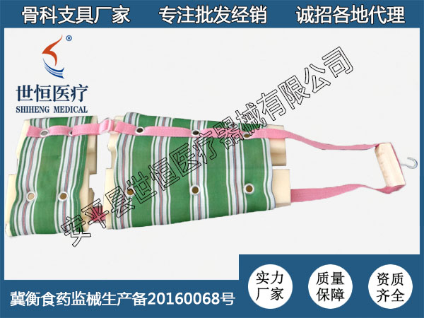 產(chǎn)品說明:◆材 質(zhì):本品采用優(yōu)質(zhì)合成材料制造.◆特 點:比石膏固定舒適,也便于皮膚清洗。(注:洗滌時請先取出足底的金屬條。)◆功 能:使用本產(chǎn)品作下肢的牽引,可免除患者的皮肉之苦及避免感染危險,深受醫(yī)生及病人的歡迎?!羰褂梅椒ǎ哼m用于骨盆,大腿,膝部及小腿骨折后的非手術(shù)治療,也可用于以上骨折手術(shù)后的穩(wěn)定保護而做的下肢皮牽引.◆尺 碼:S/M/L(分左、右)