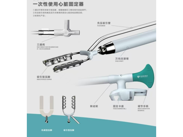 用于心臟搭橋手術(shù)時,心臟不停跳的情況下,在心臟的目標血管外建立一個固定的手術(shù)區(qū)域,通過固定頭的壓力和負壓吸引力或僅通過固