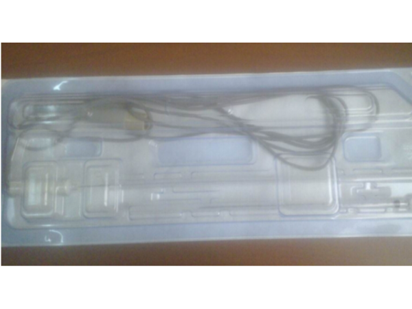 【生產許可證】蘇食藥監(jiān)械生產許2011-0099號【產品注冊證】蘇食藥監(jiān)械(準)字2012第2250657號【產品名稱】一次性使用手術電極【產品執(zhí)行標準】YZB/蘇0641-2012【產品專利號】 ZL201220019730.2【產品規(guī)格】SP-EKP-I型、SP-EKP-II型、SP-EKP-III型【主要性能結構及組成】 產品主要由刀頭、柄部、手控開關、電源線等組成。刀頭采用不銹鋼制造,柄部采用ABS或其他無毒塑料制造,電源線采用高頻電纜。刀頭表面光滑無明顯機械損傷。電刀柄頭頭部與柄部能承受50HZ、額定附件電壓3000V1.2倍的正弦波試驗電壓,歷時1min無擊穿和閃絡現(xiàn)象;電刀柄電纜能承受30s的1.5倍于所連高頻手術設備最大開路高頻電壓試驗,不發(fā)生擊穿和閃絡現(xiàn)象。產品無菌,經環(huán)氧乙烷滅菌,放置7天后,其殘留量不大于10ug/g?!具m用范圍及用途】 一次性使用手術電極作為高頻手術設備配件,使用環(huán)境要求為溫度為18℃-26℃,濕度為45%-65%,適用于頻率在0.3MHZ~5MHZ范圍,輸出功率在50W~300W范圍的高頻手術設備,用于臨床手術對組織進行電切、電凝用,為一次性使用產品?!臼褂梅椒ā?.撕開單包裝啟封口,取出產品。2.將插頭插入相應的高頻設備。3.打開高頻設備開關,選擇適宜的電流參數(shù)。4.按下黃色按鈕為電切,按下藍色按鈕為電凝。
