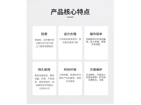 牙科移動種植治療機V6000● 充電式無線腳控開關,實現(xiàn)電馬達的調速控制● 標配一支三用槍● 內置1L大容量蒸餾水瓶● 不銹鋼材質
