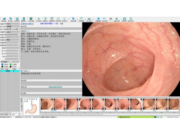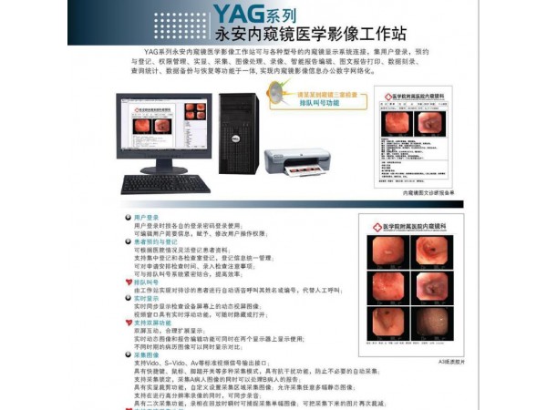 詳細(xì)特點(diǎn)如下:◇友好的人性化界面,全中文、圖形化按鈕易學(xué)易用。◇無(wú)損清晰實(shí)時(shí)顯示圖像便于操作者觀察診斷及網(wǎng)上會(huì)診?!蟠笕萘快o態(tài)圖片庫(kù),可以無(wú)限保存采集下來(lái)的病員圖片。豐富的病員資料?!笕我庹{(diào)節(jié)動(dòng)態(tài)圖像的亮度、對(duì)比度、彩度、飽和度◇多種信號(hào)制式自由選擇?!罂筛鶕?jù)需要自由選擇視頻格式和影像尺寸。◇可接入多個(gè)視頻信號(hào),并可實(shí)時(shí)轉(zhuǎn)換視頻源,實(shí)現(xiàn)“一機(jī)多用”?!蠖喾N采集方式自由選擇,如:采集圖像的正、負(fù)像,上下翻轉(zhuǎn)和左右翻轉(zhuǎn),并可自定義翻轉(zhuǎn)度數(shù)?!髨?bào)告輸出的多樣性足以滿(mǎn)足操作者的全部要求。◇具備豐富的模板、常用詞匯及快捷字符功能大大提高操作人員的工作效率,可以隨時(shí)改動(dòng)、新建、刪除現(xiàn)有的模板及詞庫(kù)?!蟛僮魅藛T可自由繪制示意圖,并可添加到報(bào)告中打印出來(lái),本工作站還提供了全面的示意圖管理系統(tǒng),方便繪制和管理示意圖,具有對(duì)照復(fù)查功能?!蠊ぷ髡拒浖哂袆?dòng)態(tài)電影錄制及回放功能?!髸?shū)寫(xiě)報(bào)告和可采集圖像可同時(shí)進(jìn)行?!罂梢詫⒉杉膱D像另存、復(fù)制,做教學(xué)光盤(pán)、演示盤(pán)、幻燈片等?!筢t(yī)師可方便的建立自己的個(gè)人圖庫(kù),把典型的圖像存入個(gè)人圖庫(kù)中,以備已后方便使用,本工作站提供全面的醫(yī)師圖庫(kù)管理系統(tǒng)?!缶哂姓嬲?jiàn)即所得的可視化圖像處理功能,并可及時(shí)觀察處理結(jié)果,確定后,系統(tǒng)程序自動(dòng)將選定區(qū)域處理結(jié)果保存?!蟊拒浖峁﹫D像標(biāo)注及方便精確的測(cè)量功能。◇打印預(yù)覽及多種打印模式可選?!蠖喾N方式的病歷查詢(xún)及統(tǒng)計(jì),操作起來(lái)方便靈活?!笕我獾脑O(shè)置動(dòng)態(tài)圖像顯示區(qū)的大小形狀?!笞杂山厝〔杉瘏^(qū)域大小,可使無(wú)關(guān)部分去除,起到打印省墨。◇可手動(dòng)或腳踏進(jìn)行采集圖像。