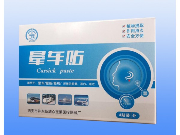主要成份】親水性高分子凝膠,植物提取物。【性 狀】此產(chǎn)品為外用貼劑?!具m應(yīng)癥/功能主治】本品適用于暈車、暈船、暈機(jī)、所致的眩暈、嘔吐?!居梅ㄓ昧俊克洪_保護(hù)層,將膠面貼于耳根后無發(fā)部位。每次一片。若需連續(xù)使用,應(yīng)輪流貼于雙側(cè)耳后,連續(xù)使用兩貼后,使用第三貼前應(yīng)間隔6個小時后使用。【禁 忌】孕婦禁用?!咀⒁馐马?xiàng)】 1.皮膚過敏與皮膚破損者忌用; 2.老年人與孕婦、6歲以下兒童忌用; 3.青光眼患者忌用。 4.勿過量使用本帖,若有不適,取下貼片,適當(dāng)增加飲水,注意休息即可?!舅幬锵嗷プ饔谩咳缗c其他藥物同時使用可能會發(fā)生藥物相互作用,詳情請咨詢醫(yī)師或藥師。【貯 藏】密封,置干燥陰涼處。