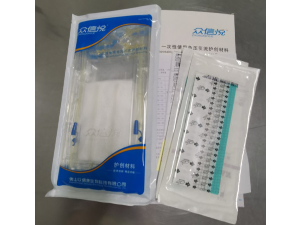 將該引流材料作為負(fù)壓引流管和被引流創(chuàng)面之間的中介,然后應(yīng)用生物透氣粘貼薄膜將整個(gè)引流區(qū)域,即形成一個(gè)相對密閉的環(huán)境,然后