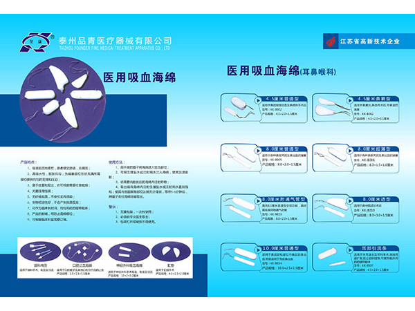 規(guī)格:8.0*2.0*1.5cm(附通氣管型) 10.0*2.0*1.5cm 4.5*2.0*1.5cm 4.5*2.0*1.5cm獨(dú)特的通氣管設(shè)計(jì),不影響病人的正常呼吸,減輕病人痛苦。適用于各種鼻科手術(shù)止血,鼻道的填塞、鼻中隔成形術(shù)、急診鼻出血等。