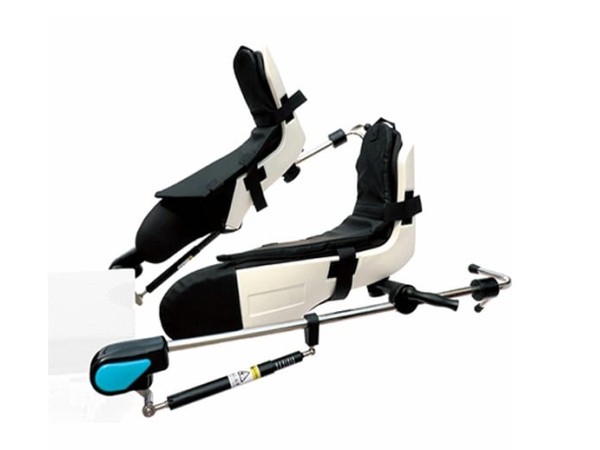 本產(chǎn)品為由腳靴、靴墊、氣壓桿、鎖緊把手和腳靴支撐桿組成。利用邊軌固定在手術(shù)床兩側(cè),通過操作手柄,在氣動(dòng)助力下實(shí)現(xiàn)上下、左