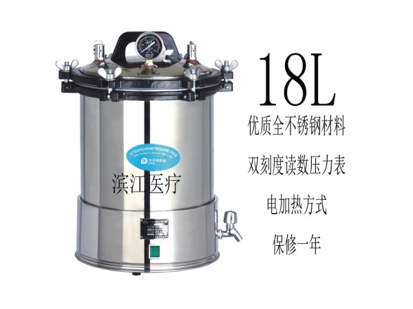 產(chǎn)品特點: 電熱型 材質(zhì):鍋體外殼,內(nèi)腔均采用優(yōu)質(zhì)不銹鋼SUS304材質(zhì)制成,耐酸,耐堿,耐腐蝕 超壓自泄0.145-0.165MPa 最高工作溫度126℃-128℃ 雙刻度二類計數(shù)壓力表 自漲式密封圈 低水位電熱管 電加熱方式 技術(shù)參數(shù): 型號:YXQ-SG46-280S 容積:18L 額定工作溫度:126℃ 額定工作壓力:0.145MPa 功率:2KW 電源:220V±10%/50Hz±2% 外形尺寸(mm):D=390,H=530