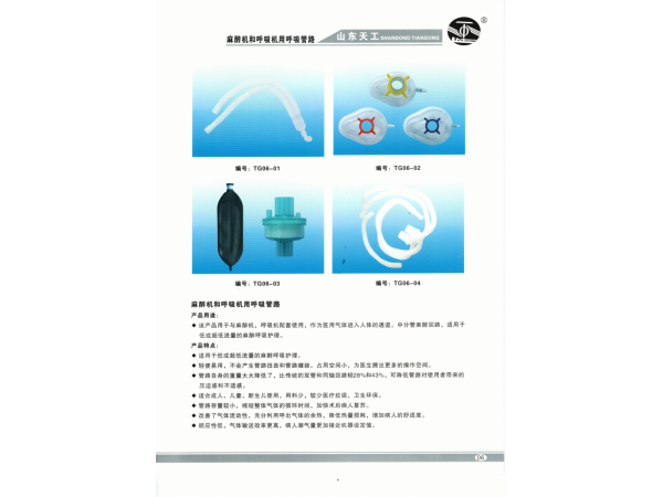 產(chǎn)品標(biāo)準(zhǔn):YY0461《麻醉機(jī)和呼吸機(jī)用呼吸管路》產(chǎn)品性能結(jié)構(gòu)及組成:由Y型件、波紋管、接頭組成。規(guī)格型號(hào):兒童型(1.0m、1.5m、1.8m)、成人型(1.0m、1.5m、1.8m)