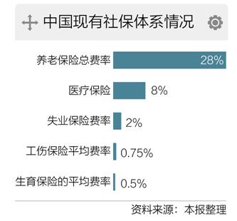 中國社保體系主要由“五險(xiǎn)一金”組成。其中,養(yǎng)老保險(xiǎn)總費(fèi)率28%(單位繳費(fèi)20%、個(gè)人繳費(fèi)8%)、醫(yī)療保險(xiǎn)8%(單位繳費(fèi)6%、個(gè)人繳費(fèi)2%)、失業(yè)保險(xiǎn)費(fèi)率2%(單位、個(gè)人比例各省自定),工傷保險(xiǎn)和生育保險(xiǎn)由單位繳費(fèi)個(gè)人不繳,工傷保險(xiǎn)平均費(fèi)率為0.75%,生育保險(xiǎn)的平均費(fèi)率為不超過0.5%。