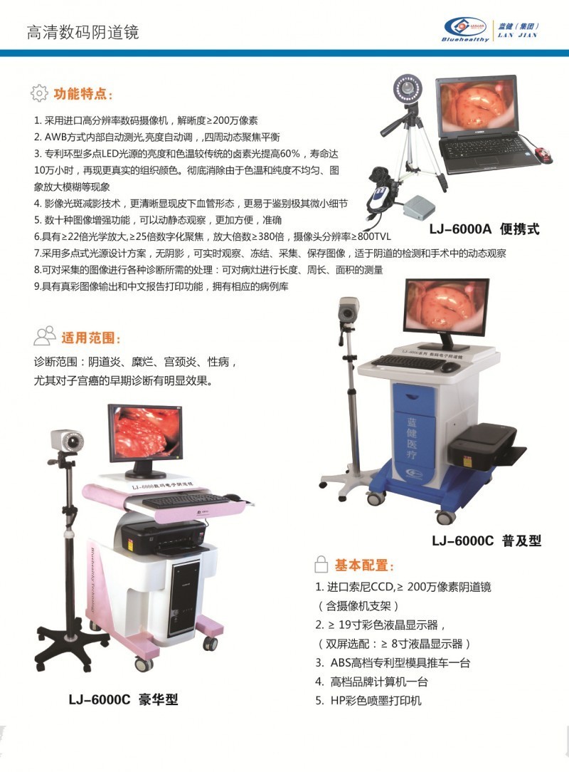 診斷范圍:陰道炎、糜爛、宮頸炎、性病,尤其對(duì)子宮癌的早期診斷有明顯效果,成為婦科規(guī)范科學(xué)檢查的必備儀器。