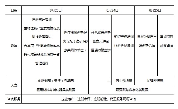 三天的創(chuàng)新生態(tài)大會(huì)有5場(chǎng)大賽、6個(gè)論壇及培訓(xùn),將有150個(gè)項(xiàng)目現(xiàn)場(chǎng)路演比賽,同時(shí)安排了20余家投資機(jī)構(gòu),涉及2-5億元會(huì)議專(zhuān)項(xiàng)天使基金。并特設(shè)以天津市醫(yī)療保障局、天津市醫(yī)療器械審評(píng)查驗(yàn)中心、天津市醫(yī)療器械質(zhì)量監(jiān)督檢驗(yàn)中心為核心的現(xiàn)場(chǎng)咨詢(xún)輔導(dǎo),以及按照產(chǎn)業(yè)邏輯設(shè)置的企業(yè)落戶(hù)、檢驗(yàn)檢測(cè)、臨床試驗(yàn)、注冊(cè)審評(píng)、代工生產(chǎn)、投資金融等平臺(tái)集中開(kāi)展服務(wù)。