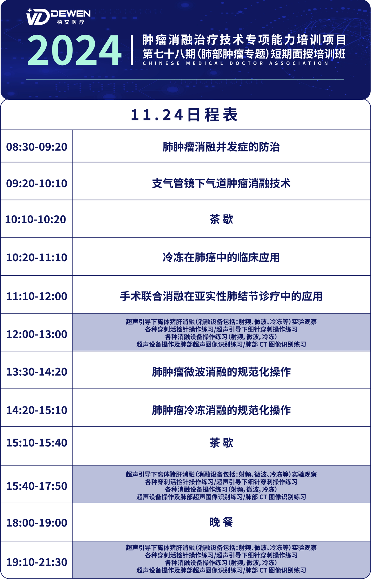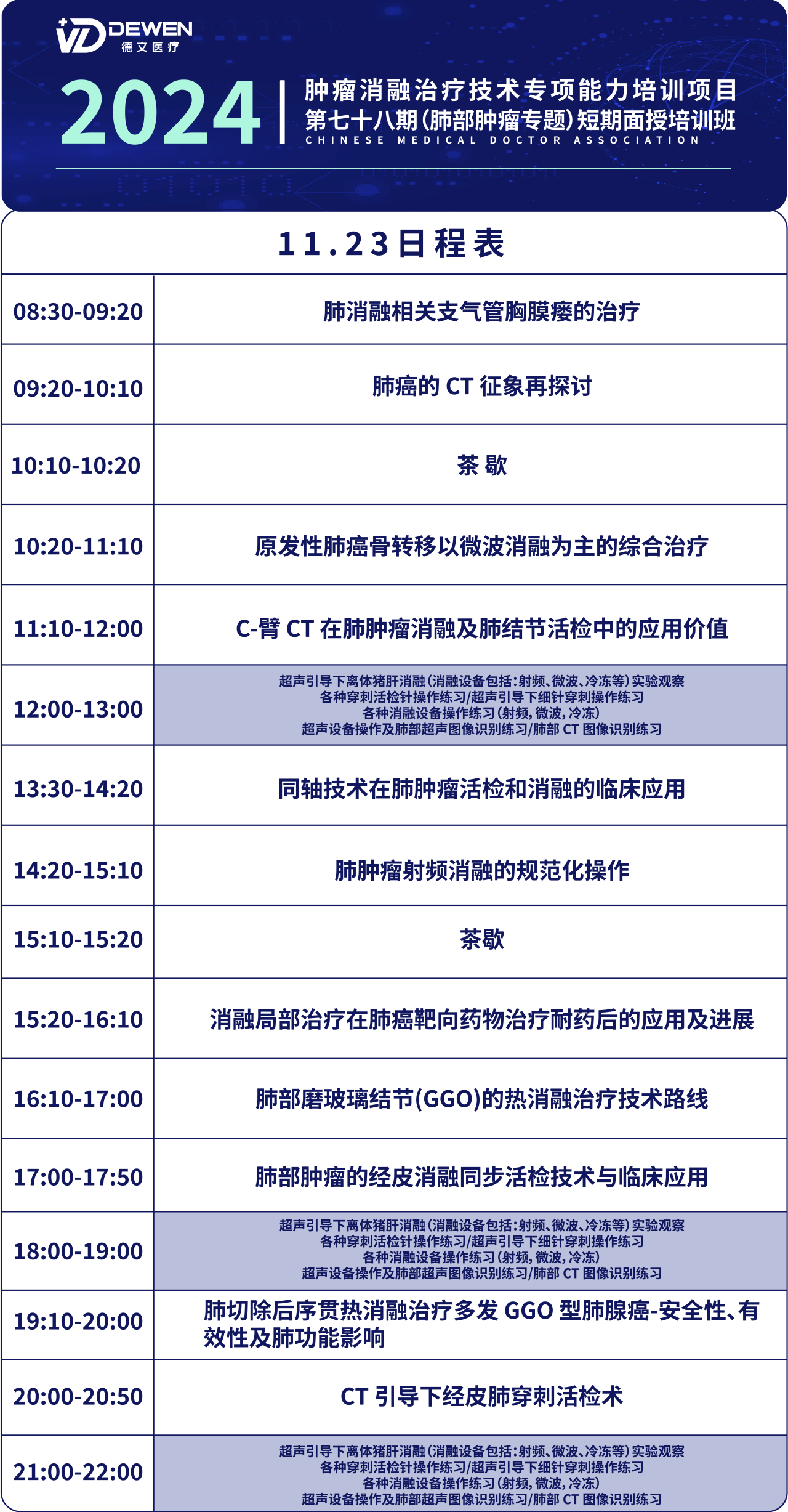 “腫瘤消融治療技術(shù)專項(xiàng)能力培訓(xùn)項(xiàng)目”第七十八期(肺部腫瘤專題)短期面授培訓(xùn)班,定于2024年11月21日至11月25日在成都市召開(kāi)。