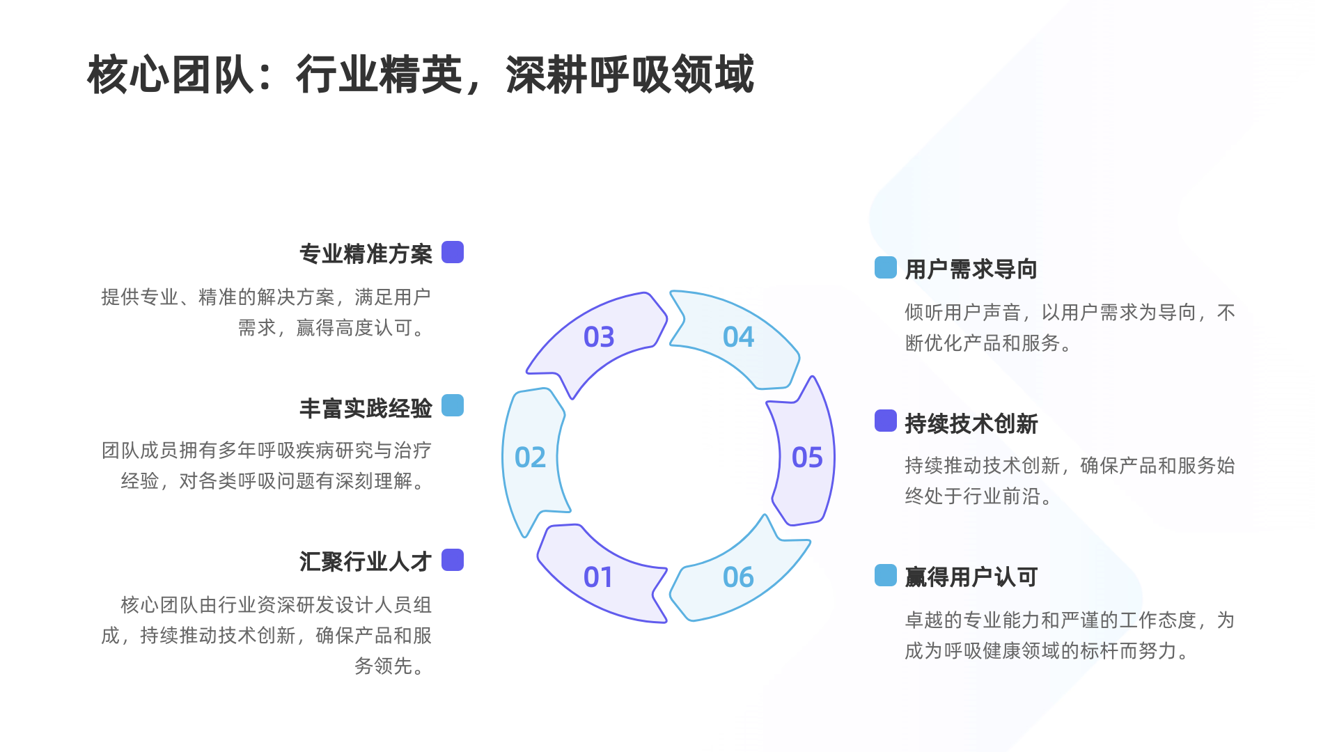 公司核心團隊由一批年輕且經(jīng)驗豐富的行業(yè)精英組成,深耕呼吸領域多年。有深厚的行業(yè)經(jīng)驗和專業(yè)知識,推動著我們在技術上的不斷突破和創(chuàng)新。