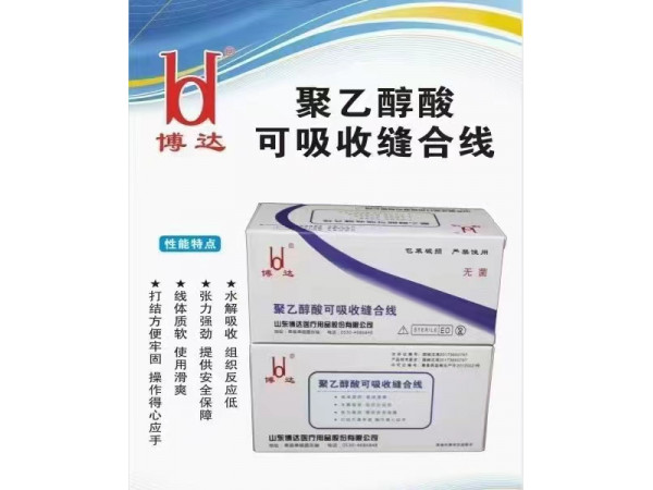產(chǎn)品說明:1、抗張強(qiáng)度強(qiáng):山東博達(dá)聚乙醇酸PGA可吸收縫合線采用多股緊密編織而成,抗張強(qiáng)度符合標(biāo)準(zhǔn)要求。2、吸收速度快:聚乙醇酸可吸收