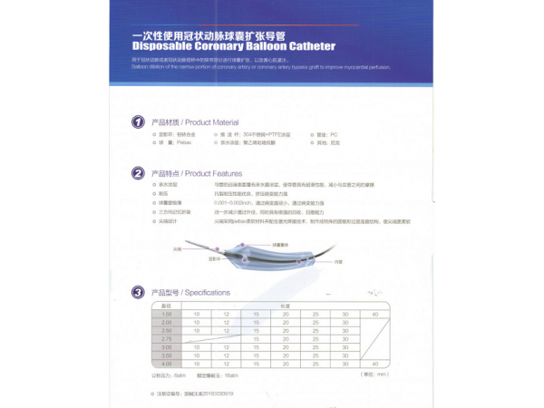 產(chǎn)品說明:產(chǎn)品由頭端、球囊、顯影環(huán)、外管、內(nèi)管、海波管、手柄等組成,含有親水涂層。產(chǎn)品經(jīng)環(huán)氧乙烷滅菌, 一次性使用。產(chǎn)品貨架有效期2年