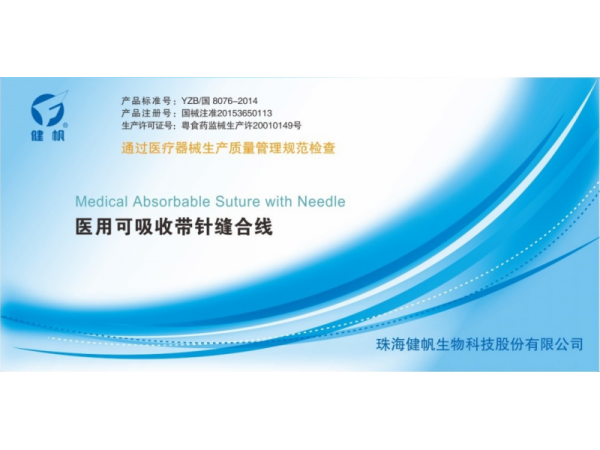 產(chǎn)品說(shuō)明:健帆醫(yī)用可吸收帶針縫合線,珠海健帆生物科技股份有限公司于2016年8月在創(chuàng)業(yè)板上市,專注研發(fā)醫(yī)療耗材產(chǎn)品,以高品質(zhì)、誠(chéng)服務(wù)為