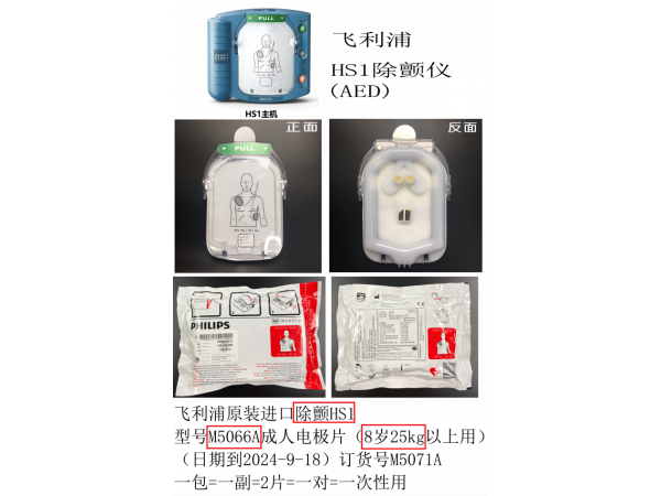 產(chǎn)品說明:飛利浦原裝進口除顫機器正面HS1型號=機器背面M5066A成人電極片(8歲25kg以上用)(日期到2024-7-31)訂貨號M5071A公司主營①原裝