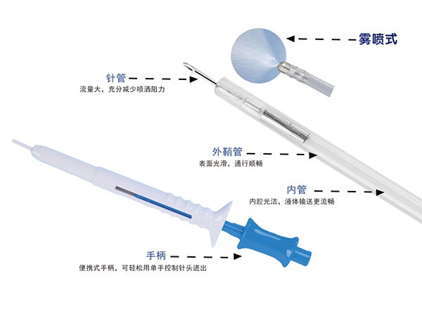 產(chǎn)品說明:操作便捷,可視化手柄設(shè)計(jì),保證手術(shù)順暢操作霧狀:噴灑范圍廣,分布均與一次性使用防扭纏設(shè)計(jì)性價(jià)比高,適用于臨床廣泛應(yīng)用注液