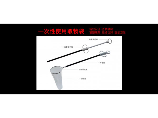 產(chǎn)品說明:一次性使用取物袋由推柄、連接管、手柄、支撐導(dǎo)管、取出鉗夾、袋體、結(jié)扎繩組成,