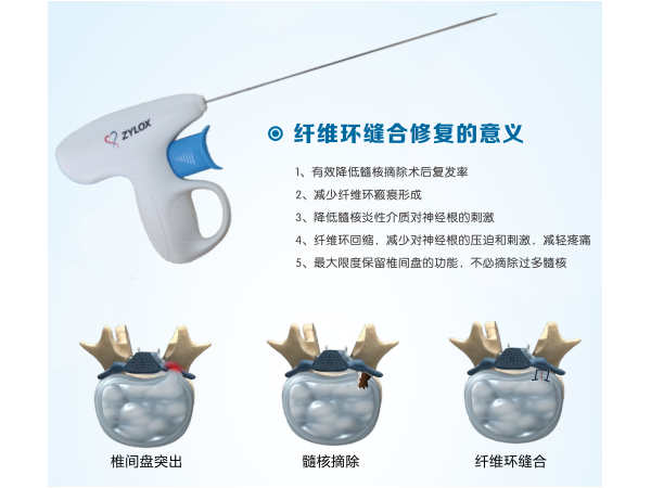 產(chǎn)品說明:一次性纖維環(huán)縫合器應(yīng)用價(jià)值解決大量椎間盤突出患者需求---能微創(chuàng)不開刀解決大量醫(yī)生手術(shù)量少的需求---有效解決復(fù)發(fā)問題,臨床效
