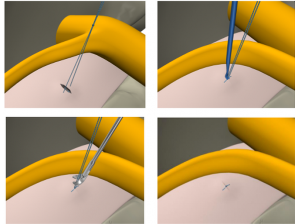 產(chǎn)品說明:纖維環(huán)縫合技術(shù)是脊柱修復(fù)與重建領(lǐng)域一項(xiàng)基礎(chǔ)技術(shù),通過對(duì)突出椎間盤髓核摘除后纖維環(huán)上的破口進(jìn)行閉合處理,完成對(duì)椎間盤完整形