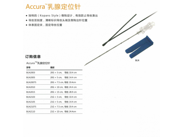 產(chǎn)品說(shuō)明:結(jié)構(gòu)及組成/主要組成成分 乳腺定位針由穿刺針、定位導(dǎo)絲組成。穿刺針、定位導(dǎo)絲為304不銹鋼外科縫合針管材料;針座材料為樹(shù)脂(K