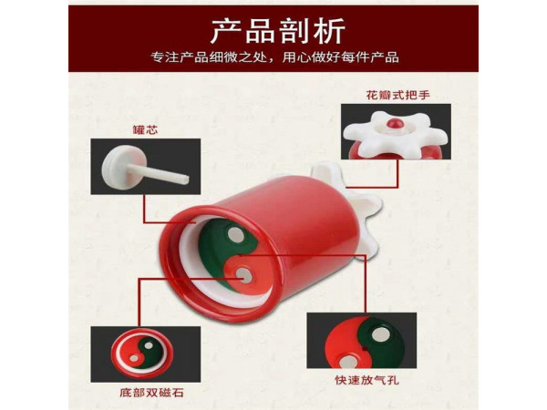產(chǎn)品說(shuō)明:七大特點(diǎn):1、拔罐不用點(diǎn)火、不用通電、無(wú)燒傷、燙傷的危險(xiǎn)。2、操作簡(jiǎn)便、只要雙手夠得著的身體部位,都可以自行拔罐。3、精心