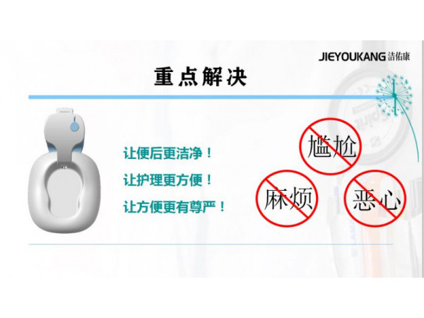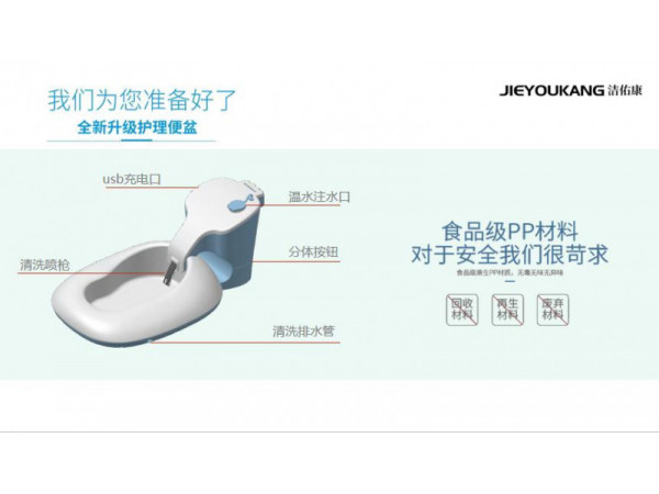 產品說明:潔佑康便攜臥式智能便盆是針對行動不便,老人,孕產婦,臥床患者的便后清潔護理產品,讓家人護理輕松,讓患者更有尊嚴的一款產品