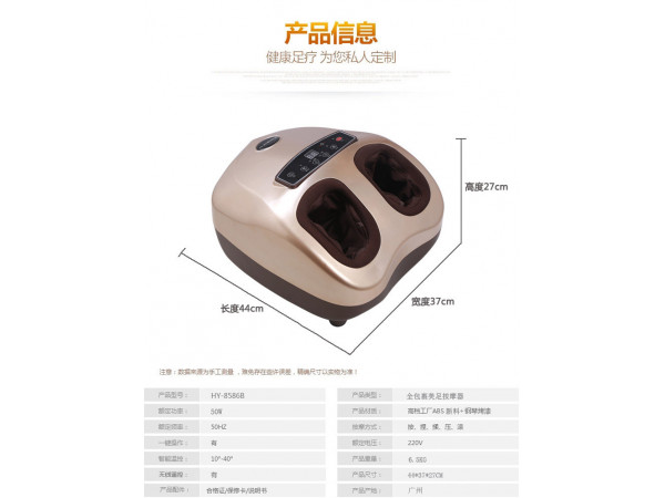 產(chǎn)品說明:1、無線遙控器操作功能,人性化設(shè)計使用方便。 2、腳底加熱裝置,加上64粒磁石,熱療磁療同步進行。 3、根據(jù)人體足部穴位,精心設(shè)計,采用智能機器手,三維立體仿生按摩法。 4、獨...